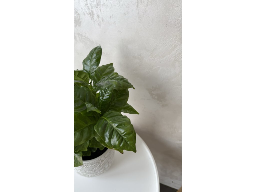 Má lesklé, tmavě zelené listy, z nichž časem vyrůstají drobné bílé květy a červené kávové boby. Vyhovuje mu polostín, vyšší vzdušná vlhkost a pravidelná mírná zálivka. Nepřelévat a nenechat stát ve vodě. Hodí se do moderních interiérů i pracovny.