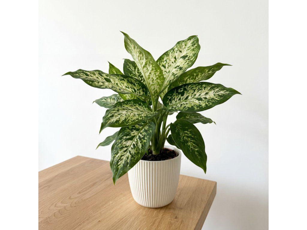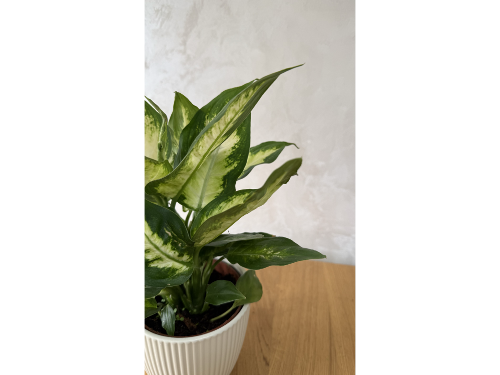 Dieffenbachia 'Camilla' 🌿🤍 je nádherná a efektní pokojová rostlina, která přinese do vašeho domova kousek tropického lesa. Její pěstování je relativně snadné, ale vyžaduje zodpovědný přístup kvůli její toxicitě.