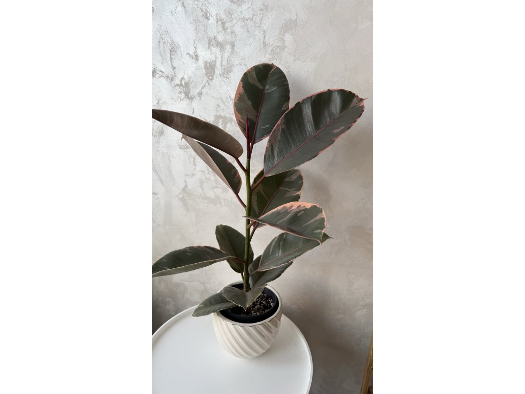 Ficus elastica ‘Belize’ 🌿💕 je stylová a barevná pokojová rostlina, která vnese do interiéru eleganci a jemnost.