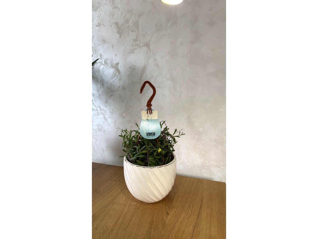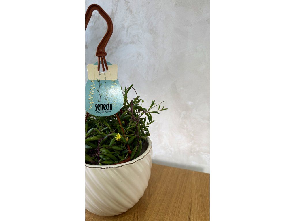 Curio rowleyanus 'String of Pearls' 💚💧 je okouzlující sukulent, který svými kaskádovitými „provázky perel“ dodá vašemu domovu jedinečnou eleganci a hravost.